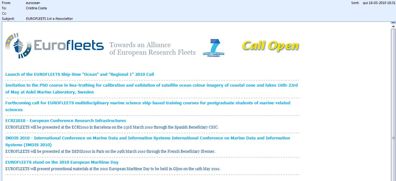 - EUROFLEETS e-Newsletter 1st (18th March 2010)