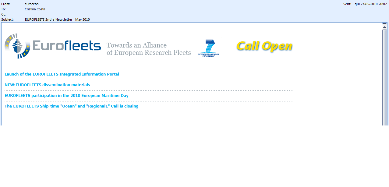- EUROFLEETS e-Newsletter 2nd (27th May2010)