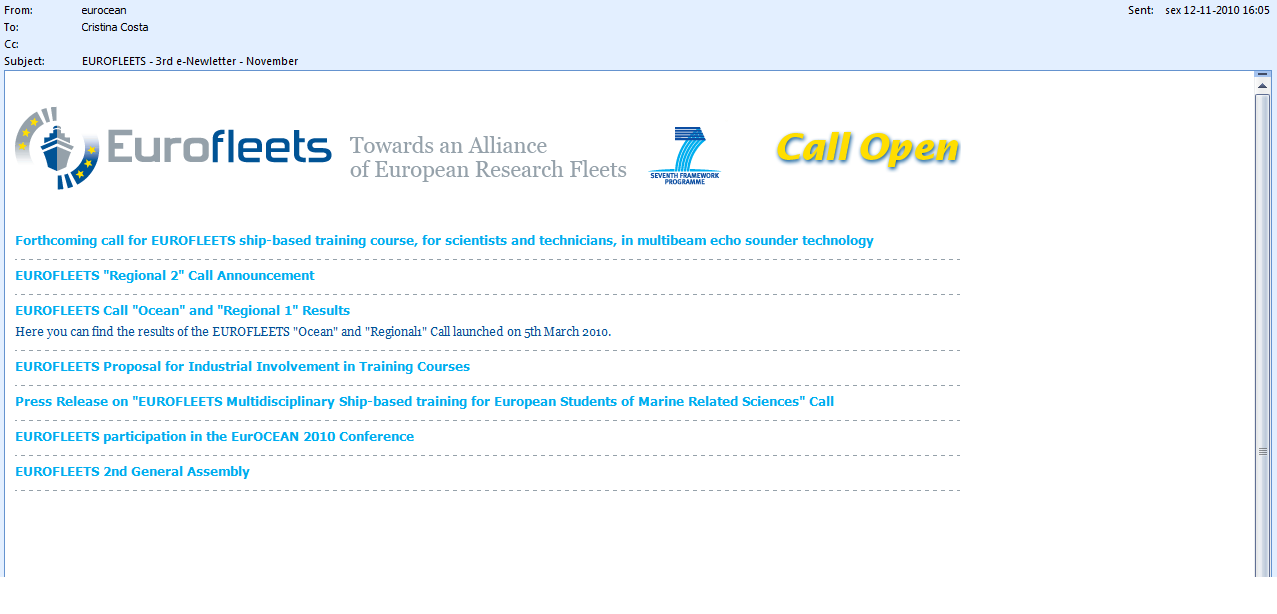 - EUROFLEETS e-Newsletter 3rd (12th November 2010)