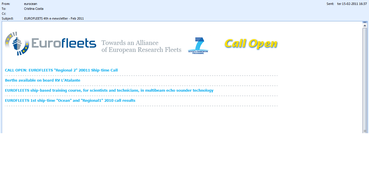 - EUROFLEETS e-Newletter 4th (15 February 2011)