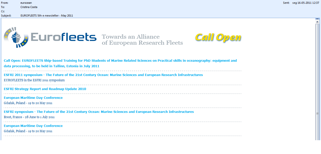 - EUROFLEETS e-Newletter 5th (16 May 2011)
