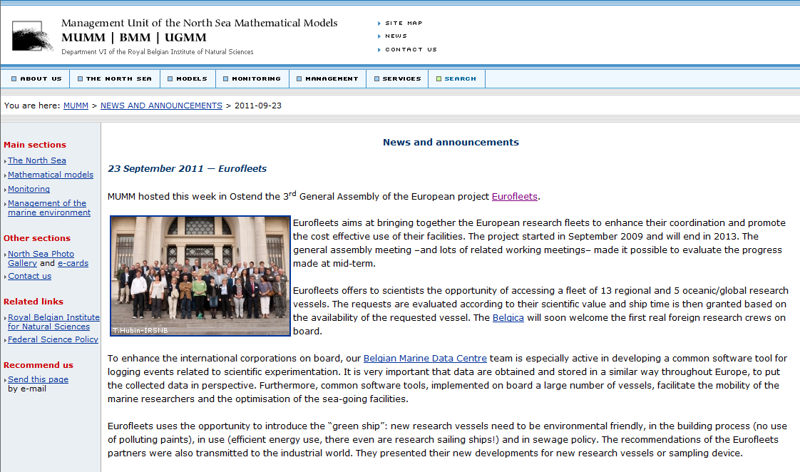 - MUMM - Article on the hosting of the 3rd EUROFLEETS General Assembly - 23 September 2011