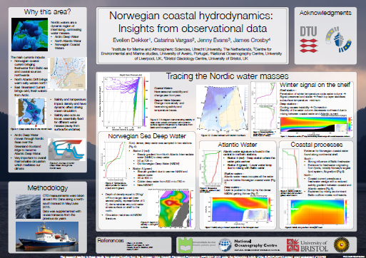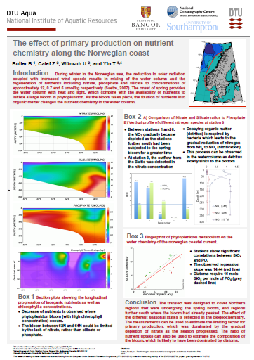 The course offered an introduction to multidisciplinary oceanographic research techniques with part of the course on board the Danish research vessel, Dana. It was designed to give students sea-going experience and a practical introduction to ocean sampling. The course consisted of two days preparative classroom teaching and training, then five days sampling on the ship between Tromsø, Norway and Hirtshals, Denmark, followed by several days working up the data collected and finally a poster session. Teaching covered five themes in marine science: hydrography, chemistry, plankton ecology, fisheries and geology.