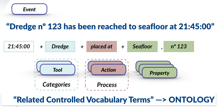 Events generated automatically by acquisition instruments will also be handled, enhancing the granularity and precision of the event annotation. The adoption of a common procedure to log survey events and a common terminology to describe them is crucial to provide a friendly and successfully metadata on-board creation procedure for the whole European fleet. The possibility of automatically reporting metadata and general purpose data, following the OGC standards, will simplify the work of scientists and data managers with regards to data transmission. To make metadata interoperable and fill the semantical gap between organisations, international vocabularies are used. Terms that are not present in vocabularies are created and governed by Eurofleets as part of the developments of Eurofleets 1 and 2.