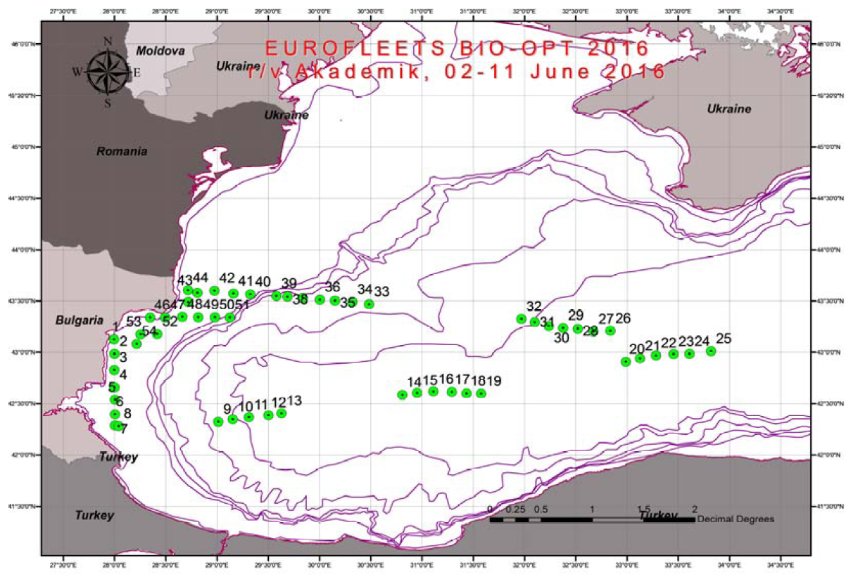 The overall objective of BIO-OPT-2016 EUROFLEETS was the collection of in situ bio-optical measurements to support remote sensing applications for operational environmental monitoring and climate studies in the Black Sea.